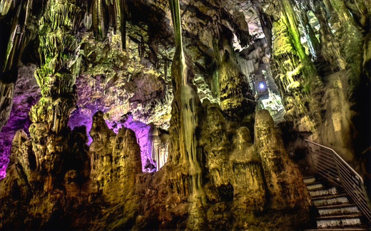 There are more than 200 caves (both sea and inland caverns) caves within the Rock of Gibraltar; formed by erosion. We were able to walk through one of the most famous caves, St Michael’s Cave, which began in a massive cavern and extended down narrow passage ways into other smaller caverns. Apparently the entire complex is more than 700 feet deep, it had many stalactites, and stalagmites which were dramatically lit with different coloured lights.